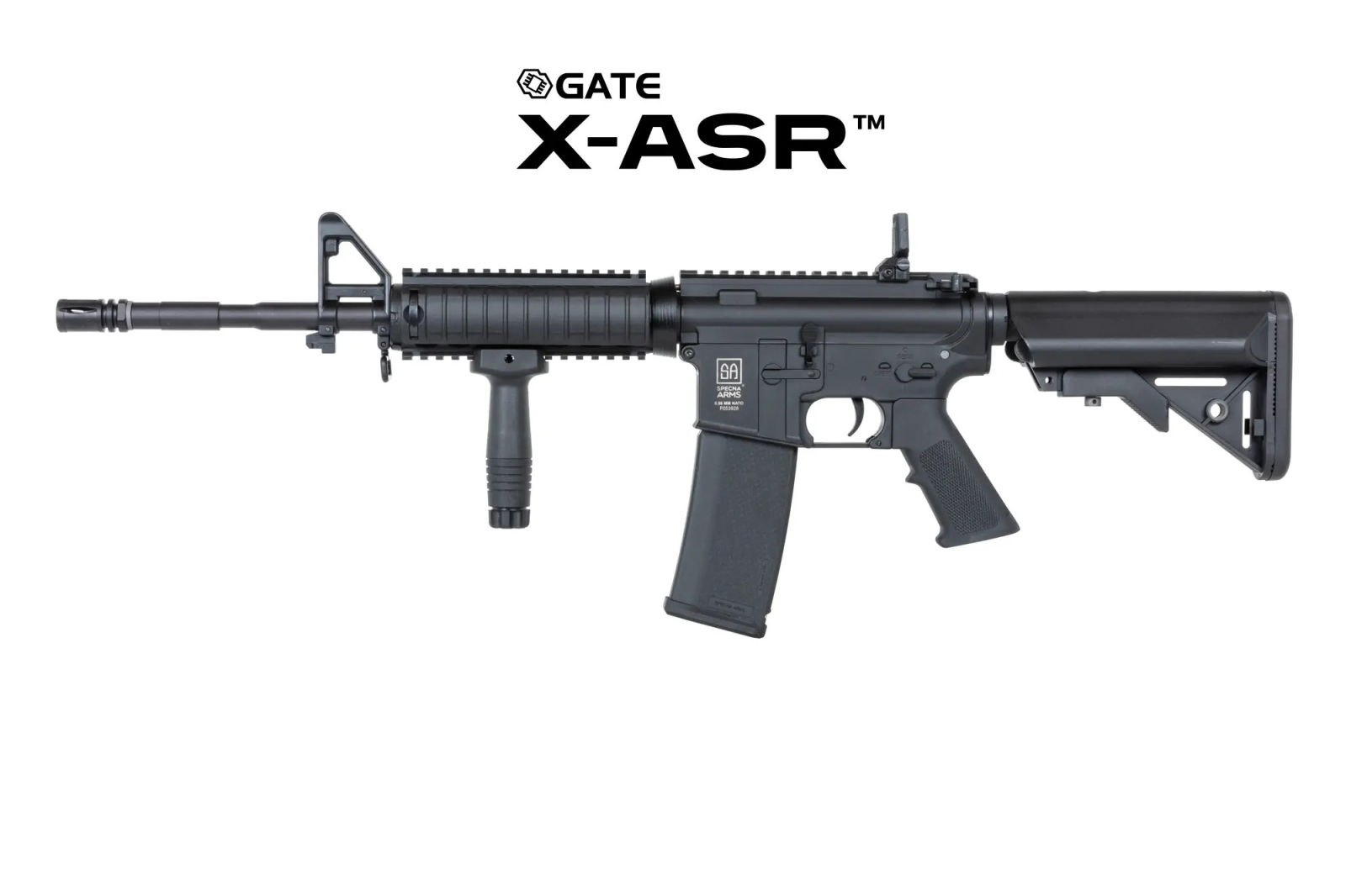 Specna Arms SA-F12 FLEX™ GATE X-ASR este o replica airsoft electrica, perfecta pentru jocuri CQB. Include MOSFET GATE, grip vertical, arc M120 on bord si arc m90 in pachet