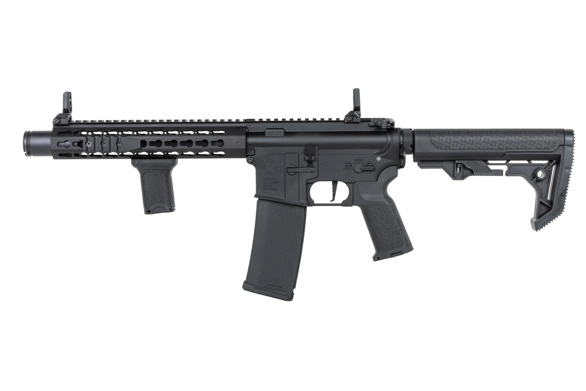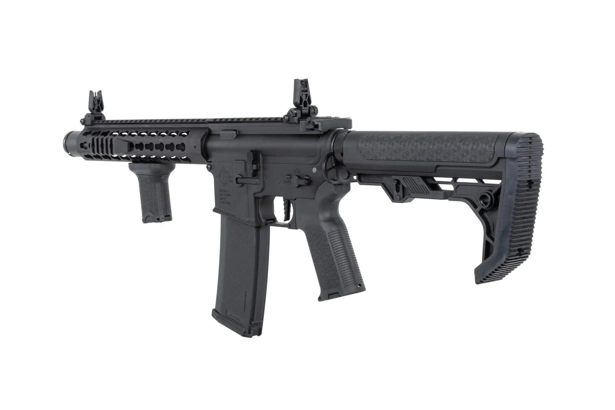 Functionalitate si ergonomie tactica Replica dispune de un front RIS Free Float si o sina superioara de 22 mm, oferind spatiu generos pentru montarea dispozitivelor optice, lanternelor sau a laserelor. Bolt catch-ul functional adauga o nota de realism operarii, facilitand reglajul sistemului Hop-Up. Patul reglabil si catariile flip-up metalice completeaza un pachet tactic versatil, compatibil cu o gama variata de incarcatoare de la producatori precum BOYI, SRC sau King Arms.