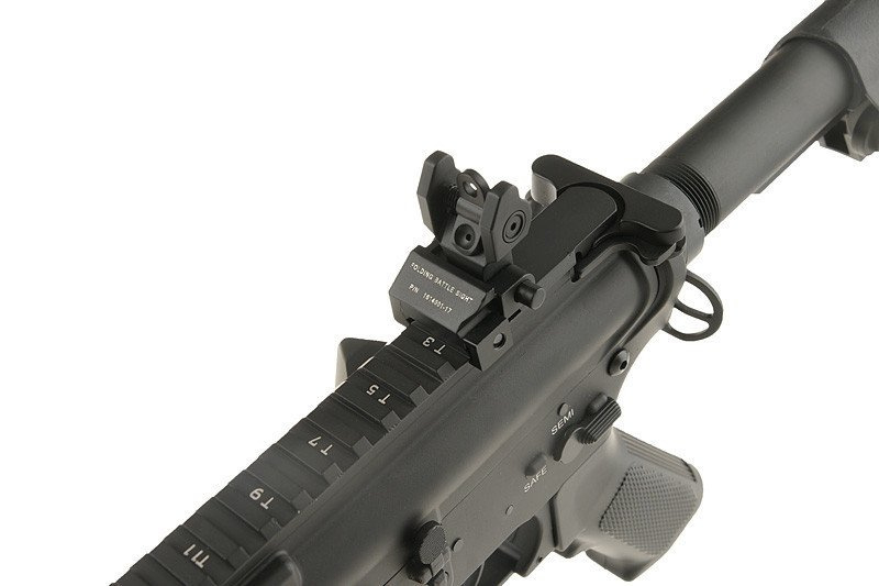 La exterior, SA-A02 dispune de sina RIS superioara de 22 mm si sine RIS frontale, oferind compatibilitate completa cu accesorii tactice precum red dot, lunete, lanterne, lasere sau manere verticale. Catarele mecanice rabatabile din metal pot fi pliate rapid, iar patul extensibil cu talpa antialunecare permite ajustarea lungimii in functie de preferinte. Teava externa este prevazuta cu filet 14mm CCW, compatibil cu amortizoare sau unitati tracer. Pentru un plus de realism, replica include bolt catch functional.