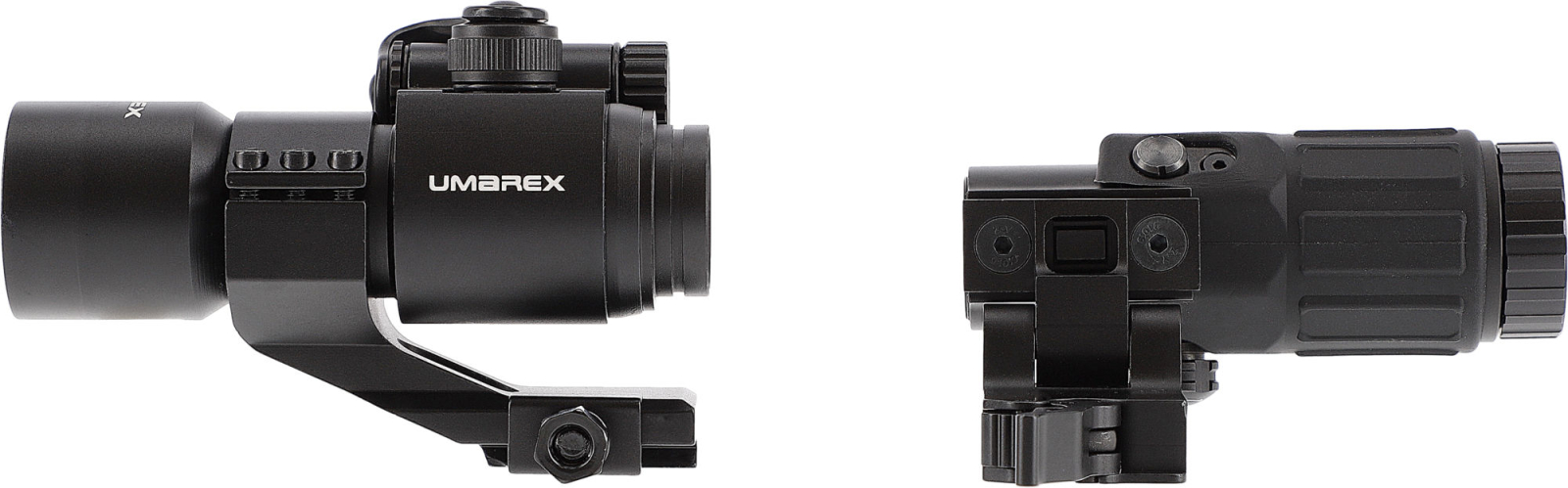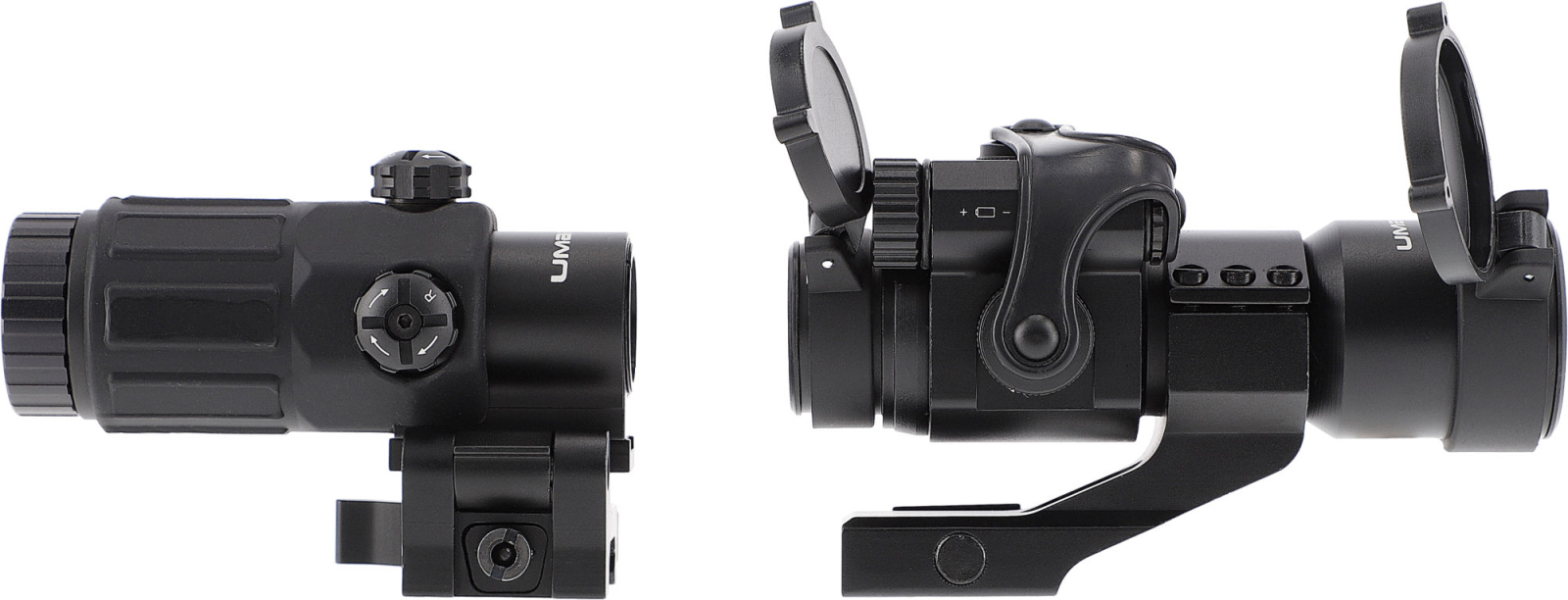 Magnifierul 3x inclus permite trecerea rapida de la angajare CQB la tragere pe distante mai mari, fara a schimba optica. In plus, sistemul dispune de un offset mount, care mareste semnificativ plaja de ajustare pe sina, asigurand o pozitionare ergonomica si compatibilitate cu majoritatea replicilor airsoft.
