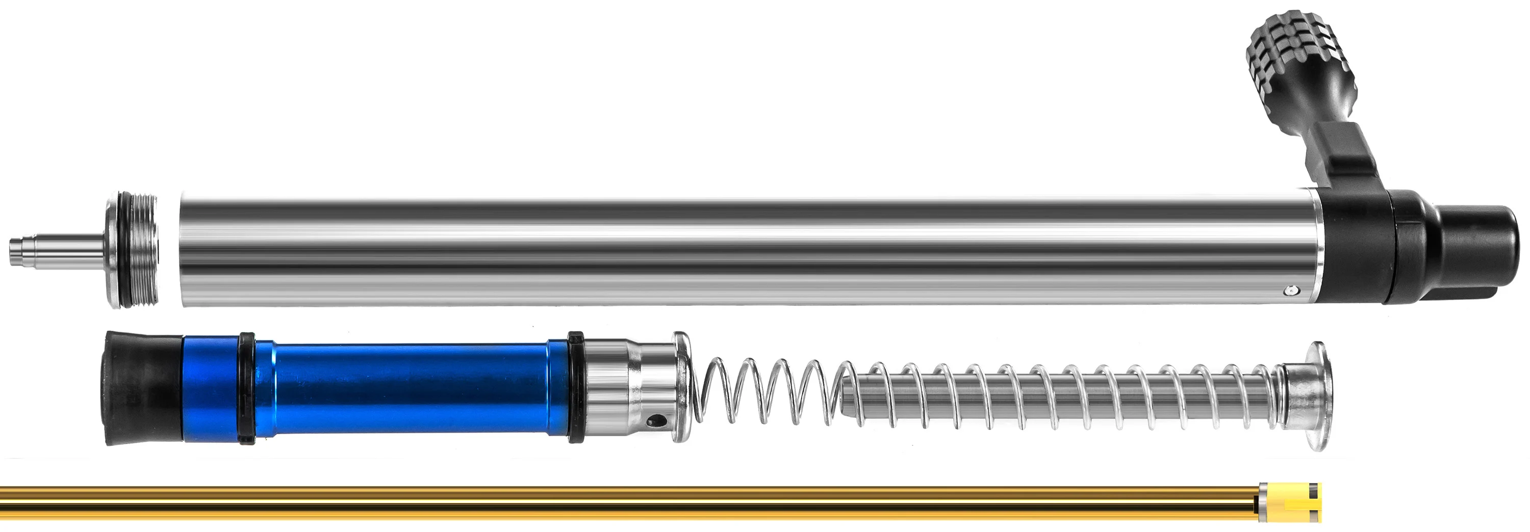Aceasta versiune combina precizie excelenta cu durabilitate ridicata: poate suporta arcuri puternice (pana la M220 — aproximativ 5 Jouli) fara a compromite etanseitatea sau fiabilitatea. Platforma VSR-10 permite o personalizare larga, iar receptorul si teava exterioara sunt CNC din aluminiu, oferind un feel premium si repetabilitate la tragere.